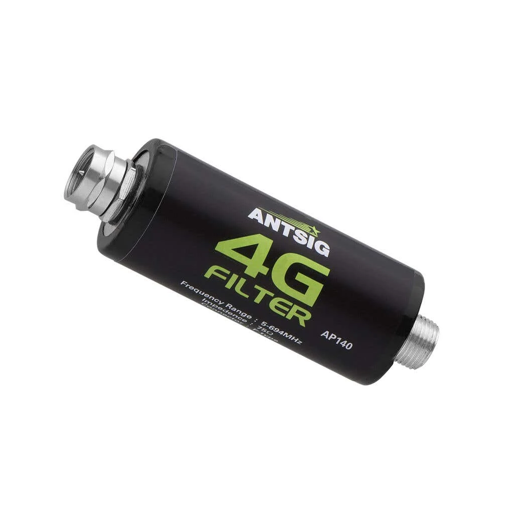 This filter will block UHF band 5, which is the LTE frequency used for mobile networks. The Antsig 4G Antenna filter can be fitted at any point in a TV distribution network. It is fitted with Male to Female F-type connectors to make installation easy.