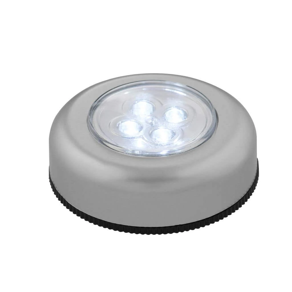 The Arlec LED Push Light is a set of 3 portable and compact lights that are perfect for illuminating small spaces such as closets, cabinets, and stairways. Each light operates with a simple push button, making it easy to turn on and off with just one hand. Push to turn on/off. Double-sided sticky tape on the bottom for easy installation. Comes in a pack of 3.