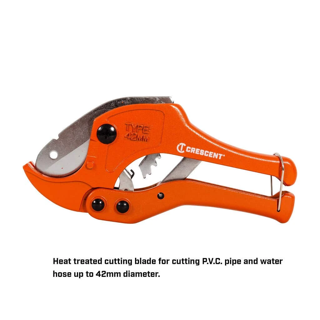 This heat-treated cutting blade from Crescent is suitable for cutting PVC pipe and water hoses up to 42mm in diameter. Crescent Conduit Cutter 42mm ensures clean cuts without the need for de-burring.