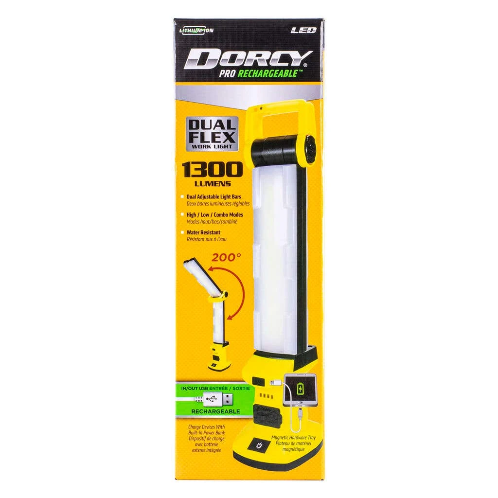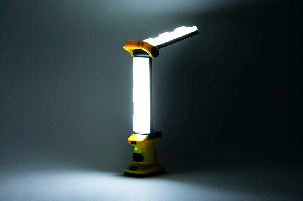 A unique work light built for the worksite that packs a punch! lightweight and powerful. With everything you need in the one unit – adjust the head of the torch for 1300 lumen of light OR fold it back down / adjust the angle of it depending on where you need light most. LED indicators at the base of the lantern keep you up to date with its percentage, USB rechargeable. No need to lug around spare . Plus with its magnetic base and fold-out hook you can hang the lantern virtually anywhere