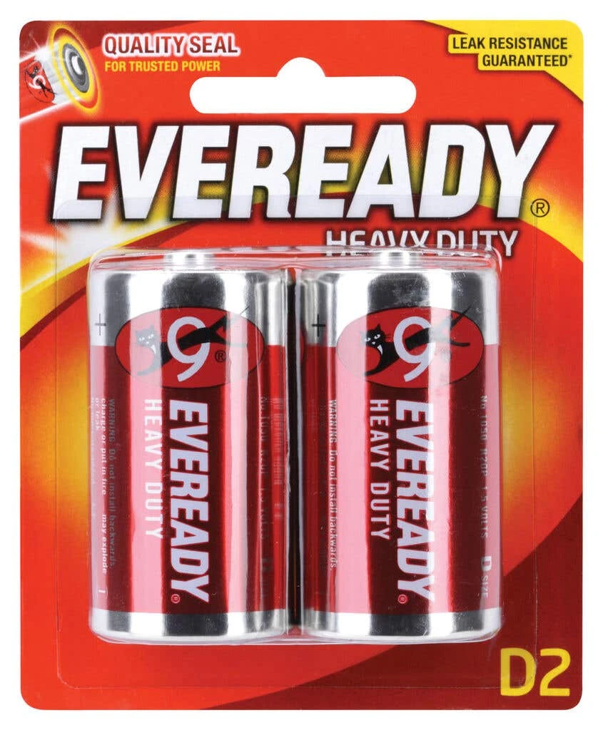 Our heavy-duty carbon zinc provide the long-lasting power you need for your everyday devices. Built tough, they come with a quality seal to guarantee they’re leak-resistant. This bulk 2 pack of D makes them even more convenient to store and grab when you need them. Trust Eveready – the name that has powered the world for decades.