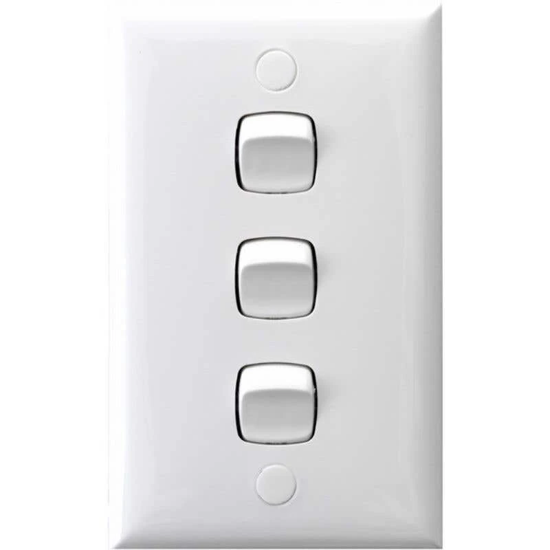 With its sleek, contemporary design and stunning white colour, this 4 gang switch is bound to be a talking point in any modern home. It features a plate measuring 114mm x 70mm, and has mounting centres of 84mm making it easy to place in any room and equally suited to use with normal screw fixing or control wire systems.
