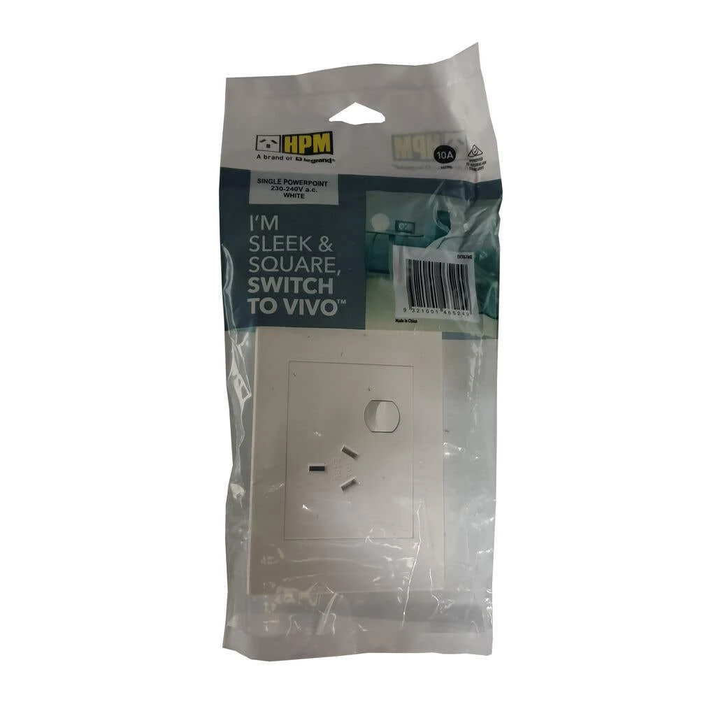 The HPM VIVO 10Amp Single Powerpoint is a great way to add some style and convenience to your home. The sleek, square design is sure to complement any decor, and the interchangeable cover plate allows you to customize it to your taste. The internal safety shutters provide an extra layer of safety, and the captive terminal screws make installation a breeze.