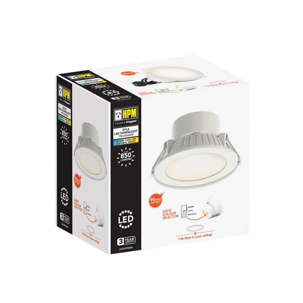The functional and new design of the downlights adds a touch of difference to contemporary lighting. The flush face downlight allows seamless integration into ceilings all around the house and features a colour-changing selector on the back to change the light from warm white, natural white and cool white. Has integrated dimmable driver compatible with trailing edge dimmers. It also has a colour changing selector to switch from warm / cool / natural white. Built with screw-less terminal cover for easy, hard-wired connection and high-quality flame-retardant plastic construction.