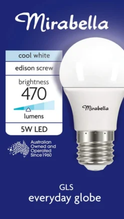 Mirabella 9W LED GLS Globe Edison Screw Non-Dimmable Cool White