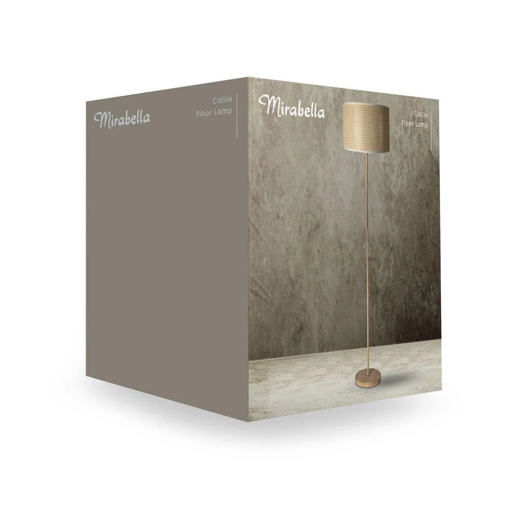 Add a natural accent to your décor with the Mirabella Callie Floor Lamp. The Mirabella Callie Lamp is a unique and contemporary design that will bring a stylish touch to your home. The lamp features a jute shade held in place by a wooden-look metal base and finished with an on/off switch. The natural jute shade and wood look metal base will create the perfect atmosphere for your home. Add your desired light globe based on the lighting ambience you are looking for. Use an LED E27 globe light source as shown.Â