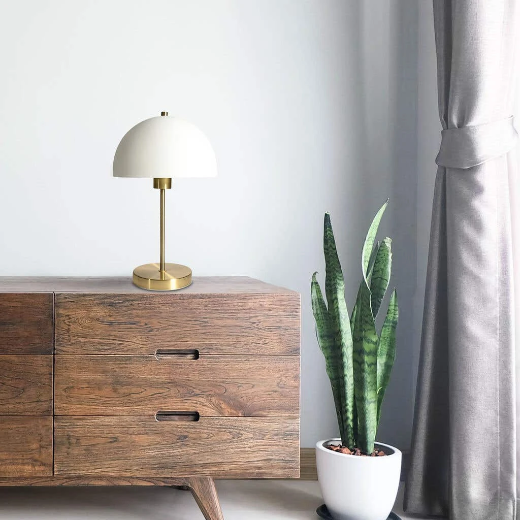Add some elegance to your living room, bedroom or office space with the Mirabella Essie Table Lamp. This stylish lamp brings warmth with the White Glass Shade and Gold colour Base. This table lamp is a lightweight and sleek design that features a white glass shade that’s been expertly crafted to gently diffuse the light. The brushed brass metal base makes for a classic look that can complement any home’s interior. Add your desired light globe based on the lighting ambience you are looking for.