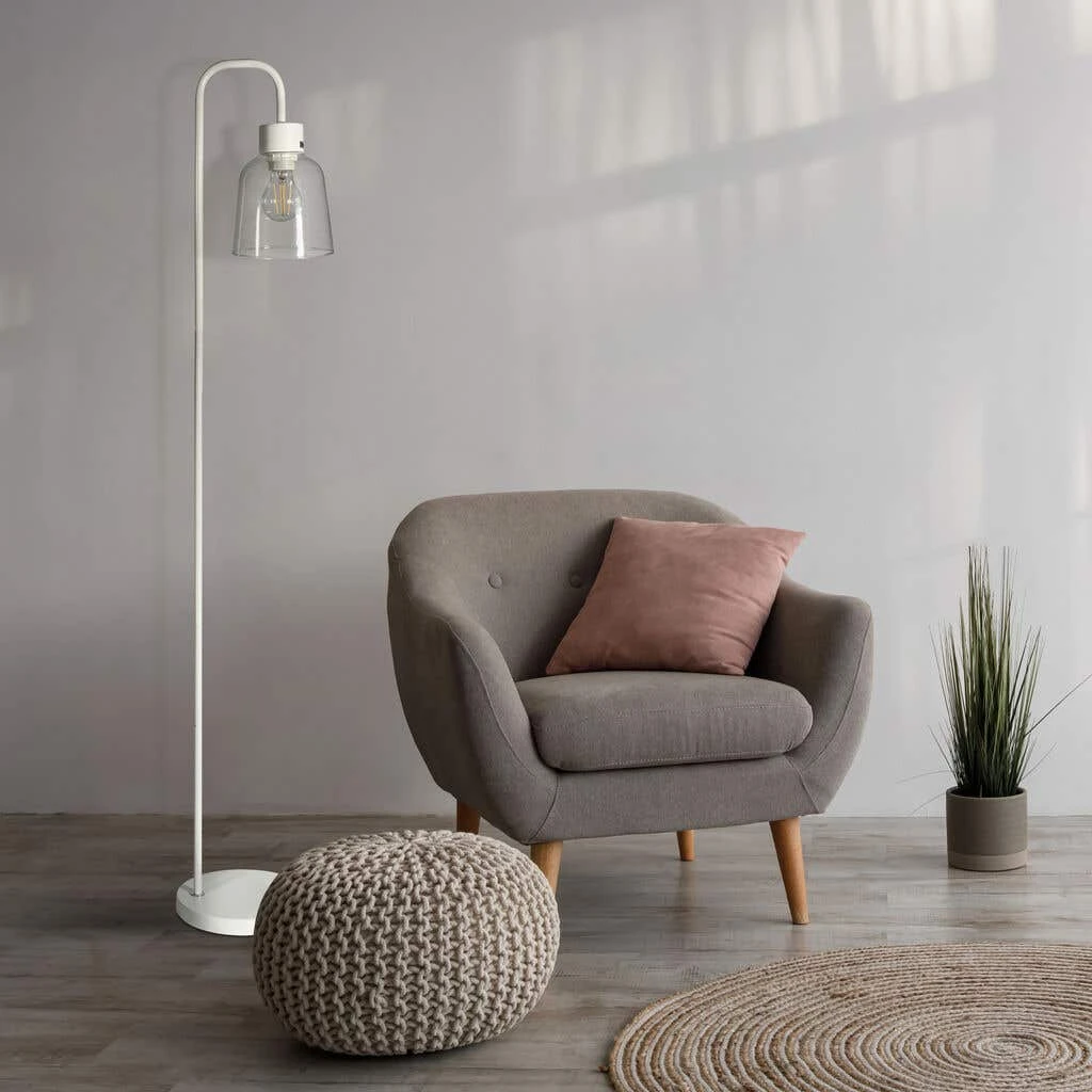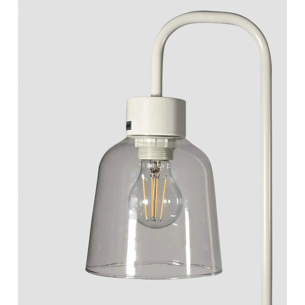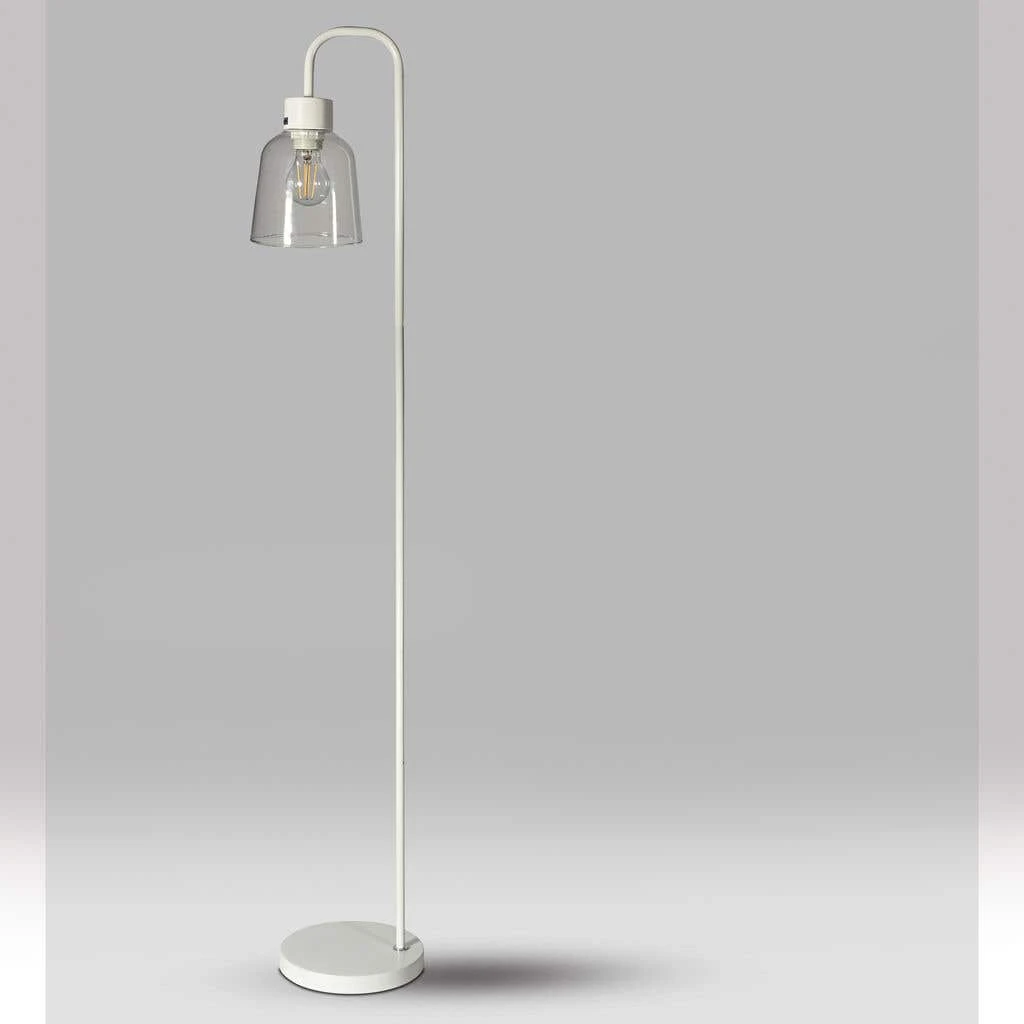Brighten up your living space with the Mirabella Nash Floor Lamp. This modern lamp features a clear glass shade and a metal frame. This classic floor lamp features a clear glass shade, matte white metal body and base and an on/off switch and provides directional lighting to an area of space. This stylish floor lamp will easily complement any existing decor. Add your desired light globe based on the lighting ambience you are looking for. This lamp works well with recommended globe 5W LED E27 (not included).Â