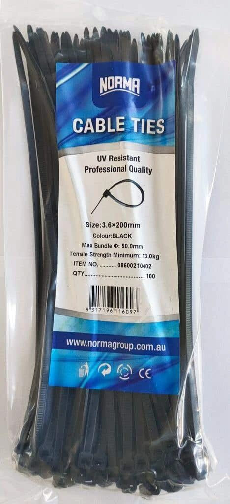 Norma industrial cable ties are your trusted brand for high-quality cable ties for various applications across multiple industries including mining, rural, automotive/ and electrical. Made of polyamide nylon 6.6, Norma Industrial Cable Ties are resistant to extreme temperatures and numerous external agents. All cable ties offer quick and safe assembly and the black version offers excellent resistance to UV rays thanks to added carbon black.