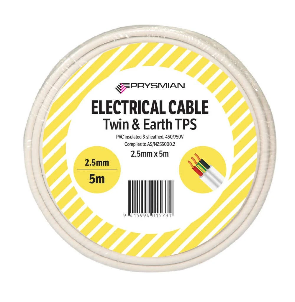 The 2.5mm Twin & Earth Connector Cable is suitable for lighting fixtures, appliances, and fixed wiring installations. 450/750 Volts. Core colours: Red, Blue, Green/Yellow.