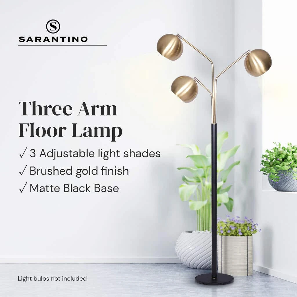 A smart and stylish way to light up a seating area, this 3-Arm Arc Lamp provides overhead lighting that can be controlled with three adjustable shade arms. The brushed gold finish is paired with a matte black base to display striking style. Chic and modern, Sarantino Adjustable 3-Arm Arc Lamp is sure to elevate your decor. Set it by the entryway for a grand welcome, or use it in the living room for a relaxing glow. It is the most elegant way to bring style into your home.