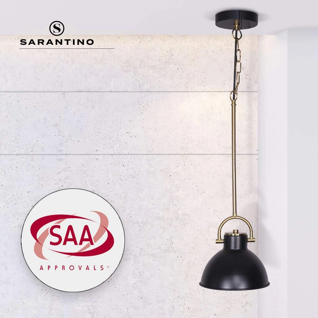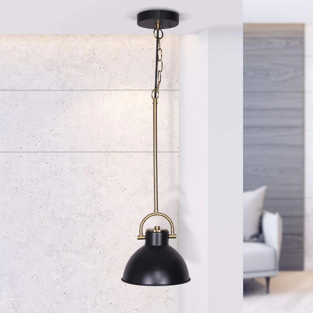 Bring contemporary style to your home with this stunning piece from Sarantino. Sarantino Black & Gold Pendant Light is a pendant light with a matte black and brushed gold finish features a versatile canopy and shade swivel joints that allow for easy installation on sloped ceilings. This bright fixture has a metal chain, allowing you to adjust the height from 60cm to 140cm. You can mount this elegant fixture in many different areas of your home. Perfect for the living room, bedroom, kitchen, dining room, bar, office, foyer, hallway, entryway, study or den.