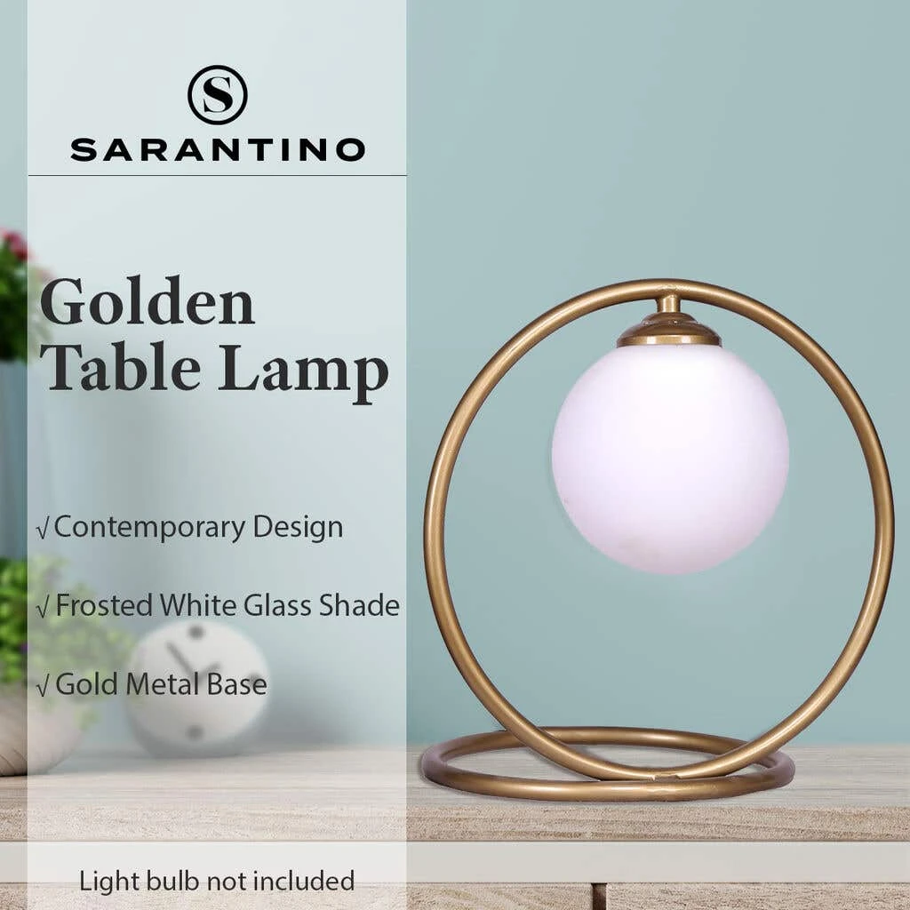 If you’re looking for a beautifully crafted lamp with a contemporary and luxurious design, this Sarantino table lamp is perfect for you. Featuring a globe-shaped shade and a gold metal base finish, this table lamp achieves an elegant and chic aesthetic. Made from frosted white glass, it provides a wonderfully warm and relaxing ambience, making this lamp a great addition to your office, bedroom, study or college dorm.