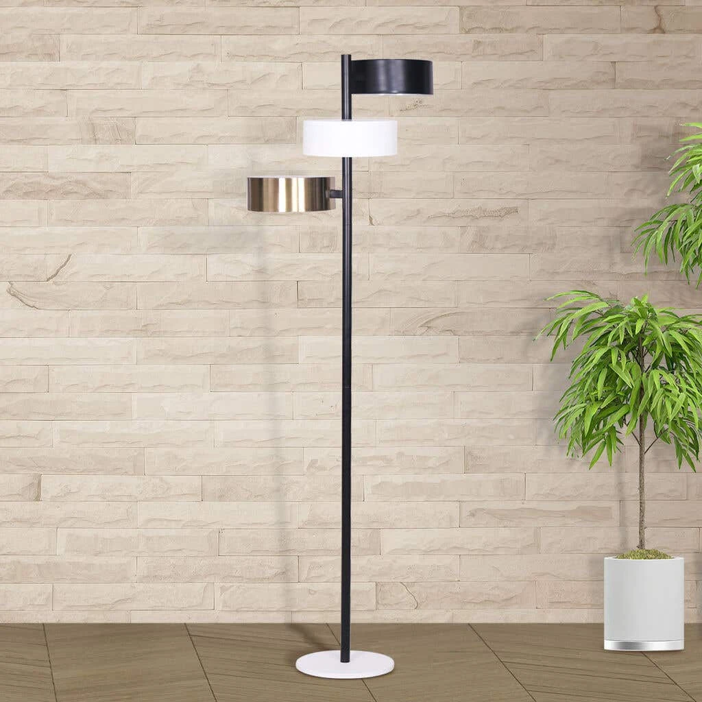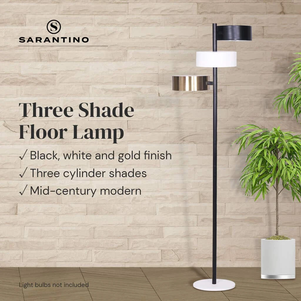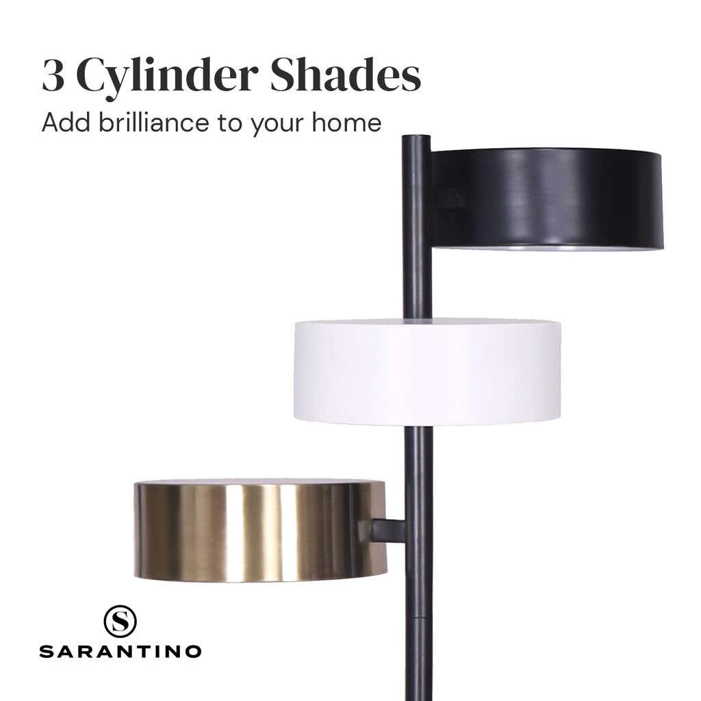Inspired by vintage Hollywood decor, this uniquely designed tree lamp has chunky cylinder shades in multiple finishes to create an industrial style. With three task shades, this lamp can work in various areas of the home. Place Sarantino Metal Floor Lamp with 3 Swirl Shades next to your desk to illuminate your workspace or in the living room corner for room-filling ambient lighting.