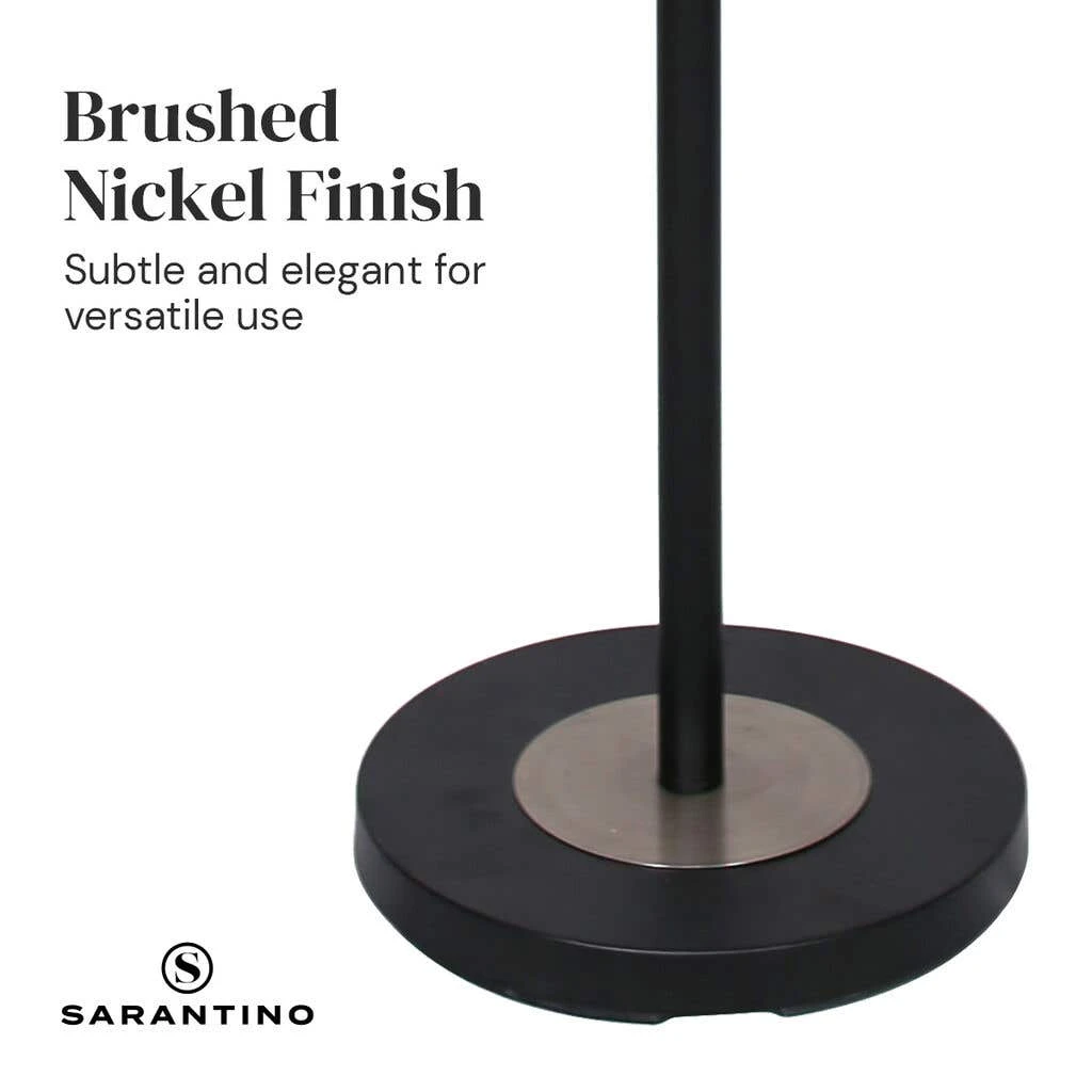 With its black metal and brushed nickel finish, this Sarantino Metal Floor Lamp with Cream Drum Shade is an eye-catcher in any room. Its cream linen drum shade is attractive and elegant, perfect for a wide variety of interiors. This lamp is a great choice for the living room, bedroom, office or study. The combination of the fabric lampshade and brushed nickel finish makes this floor lamp a true standout piece. It comes complete with all assembly accessories and a detailed user manual for quick installation.