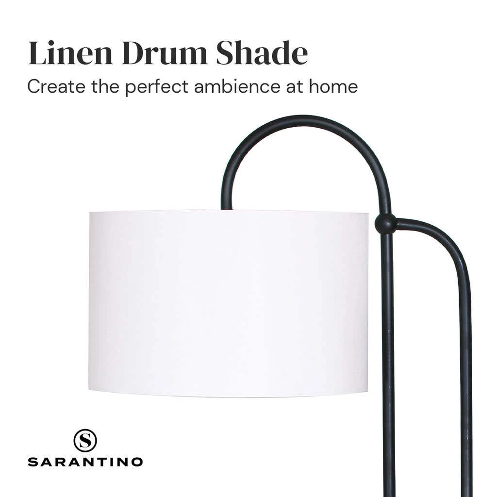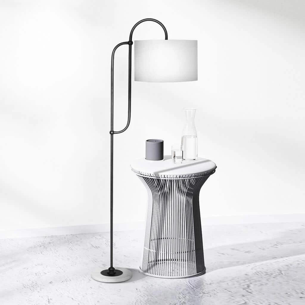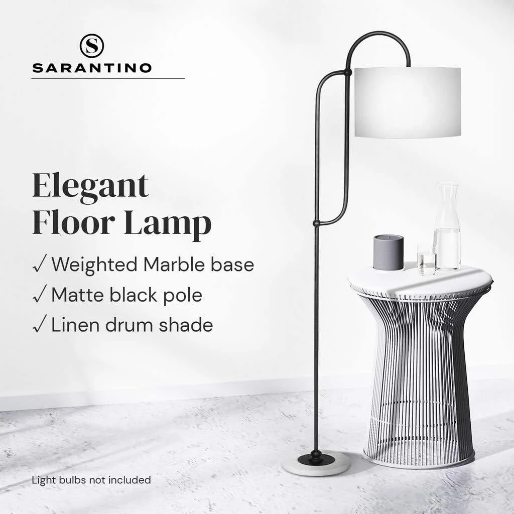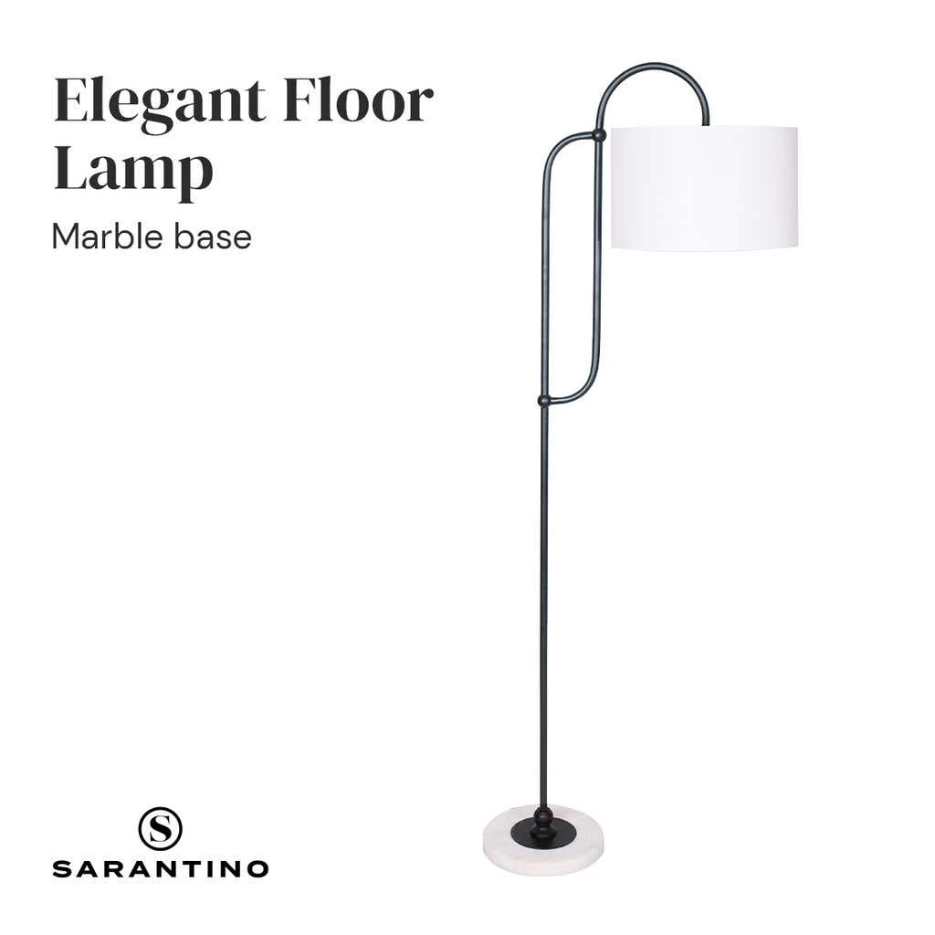 Sarantino Metal Floor Lamp with Marble Base & Off-White Shade is a modern classic finished with high-end details like a bespoke lampshade, easy foot-step switch and elegant marble base. Designed to illuminate your home with warm light, this lamp makes a stylish addition to any living room, bedroom or office. The curved post has a matte black finish and is weighted by a beautiful (and sturdy!) marble base. With a 100% cotton hardback drum shade, this piece will adorn your home for a long time.