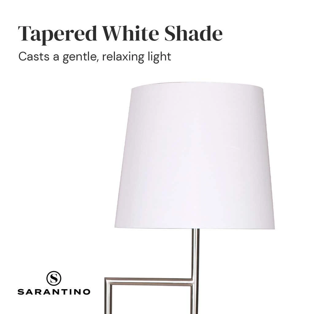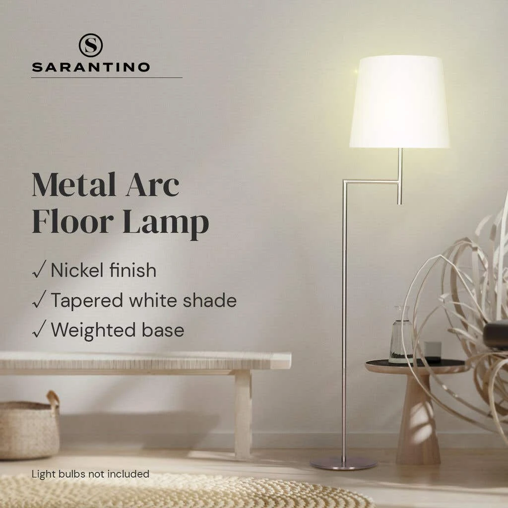 This modern floor lamp has a neat design and easily fits most decor styles from mid-century modern to traditional and contemporary. The nickel finish pairs with the tapered lampshade to make you feel warm, cozy and at home in any room. The shade directs light downwards, making this lamp perfect for a reading nook. Let the shade hang over your sofa, armchair or desk for added illumination. This Sarantino Nickel Metal Arc Floor Lamp is easy to move around to where light is needed most. The weighted base prevents tipping, and the convenient footswitch allows you to easily switch the lamp on or off.