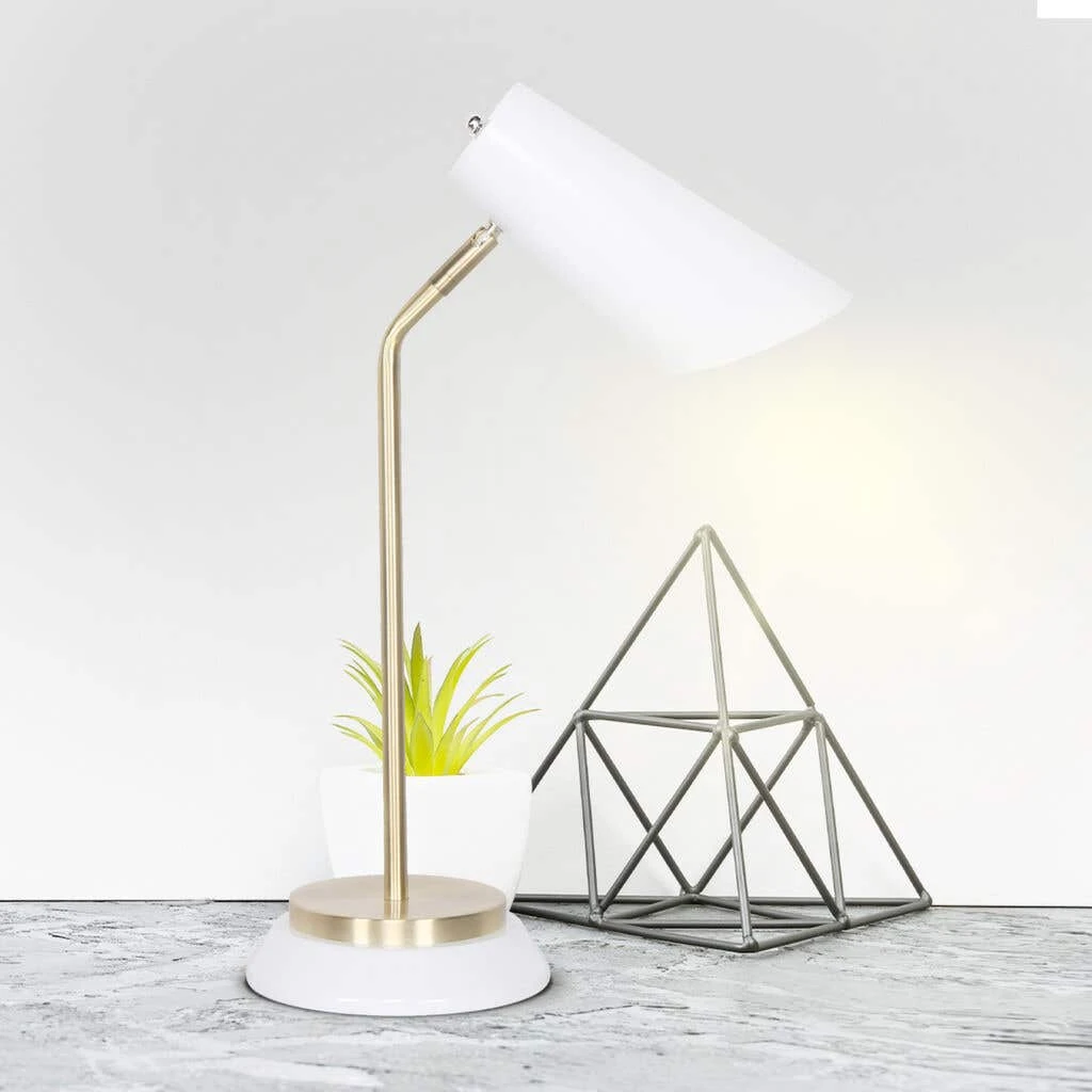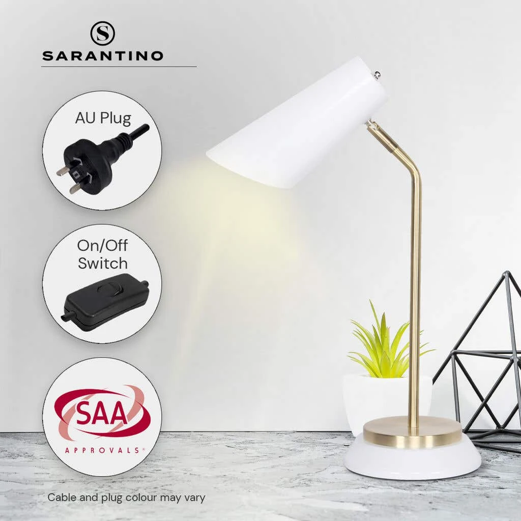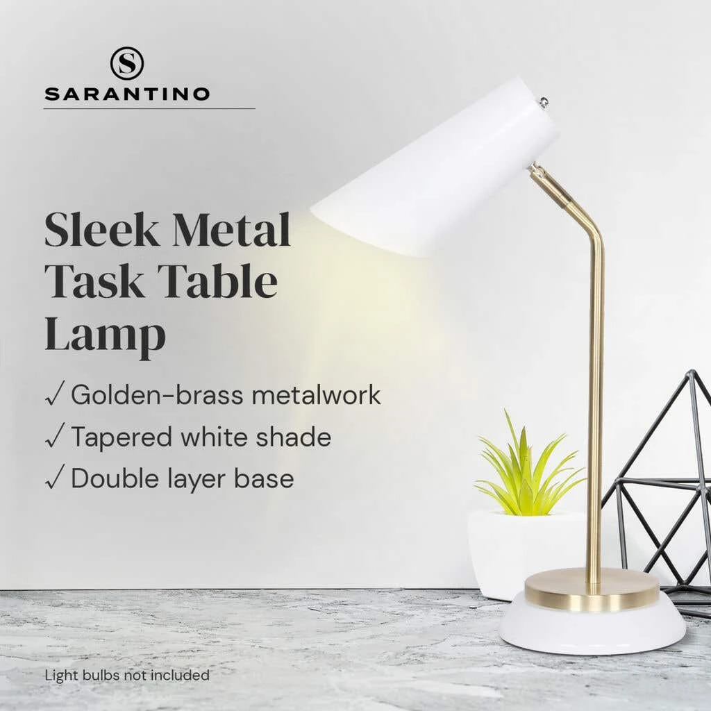 The brushed gold and matte black finish offers flexibly focused lighting for your home office desk, end table, family room side table or bedroom nightstand. Sarantino White/Brass Table Lamp can be effortlessly assembled in five minutes or less using the provided instructions and necessary installation accessories for your convenience.