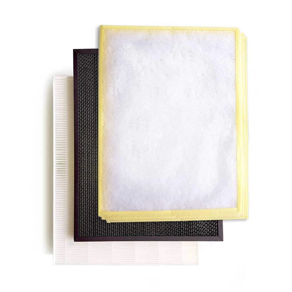 - This air purifier combines multiple filters, including a True HEPA filter, carbon filter, and a washable pre-filter, to remove up to 99.97% of airborne pollutants, allergens, and pet-related particles as small as 0.3 microns